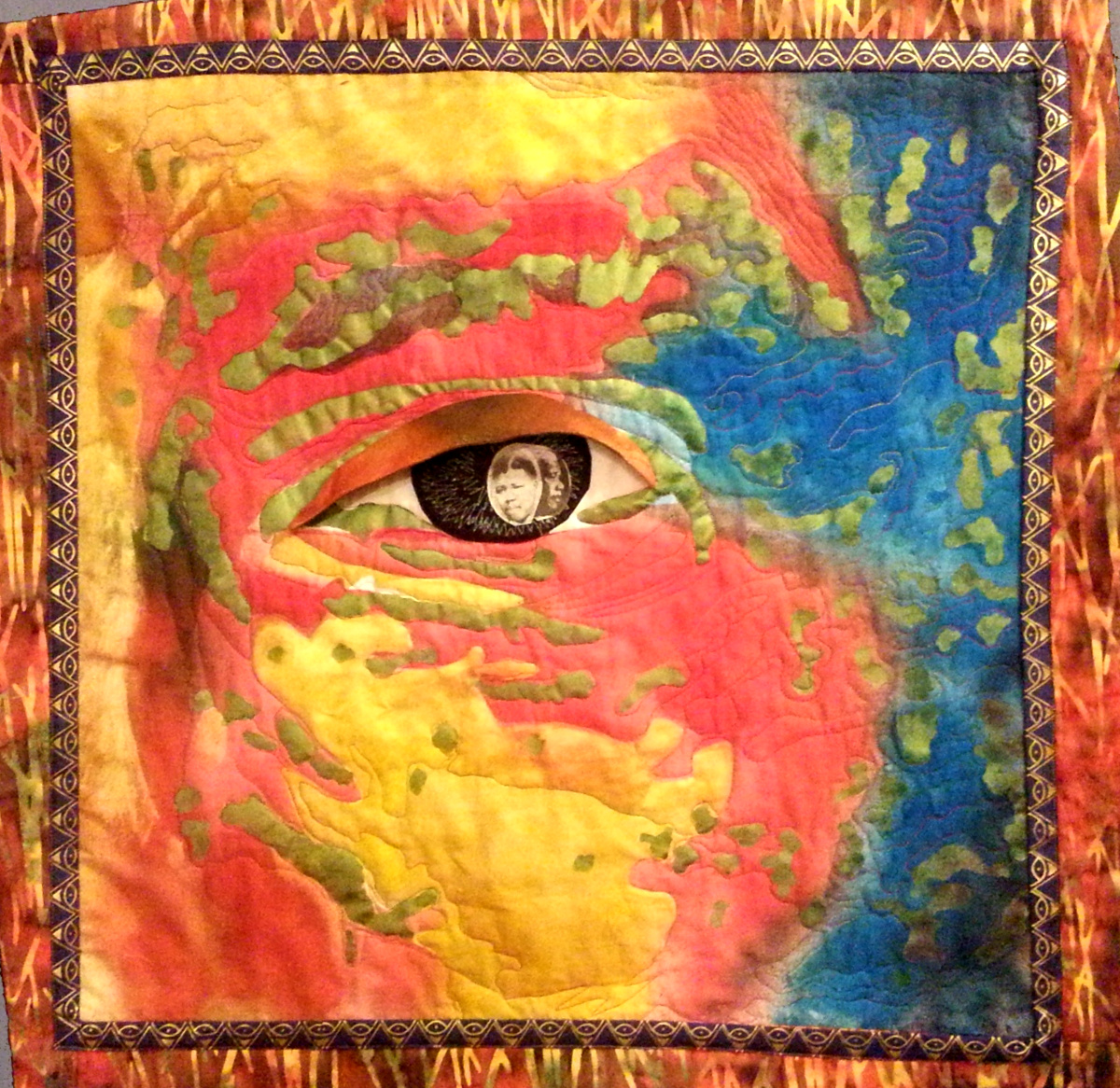 I love to do research as I’m working on a piece, so I immersed myself in South African culture, the various tribes, the music…In the meantime I got a call from a dear friend in Atlanta, and I happened to mention to her that I’m making this quilt. And she said, ‘You’ve got to make it on ‘the pupil on the eye’!”
